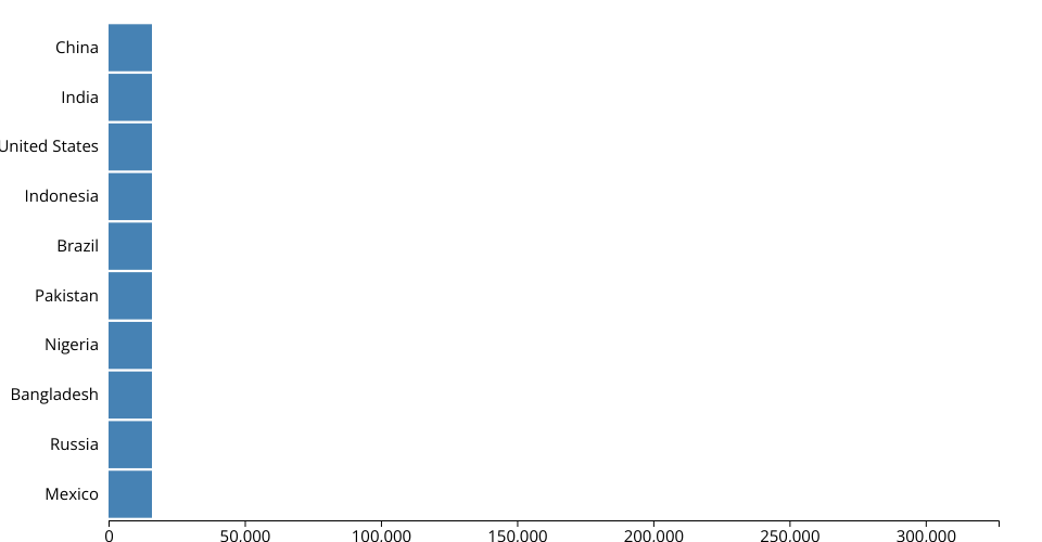 This bar chart shows population of 10 most populos countris.The data comes from the year 2018 estimate in United Nations:World Population Prospects 2017.