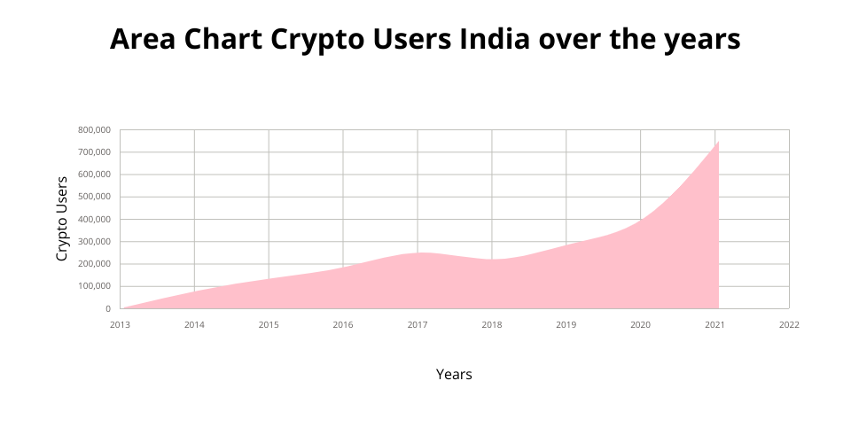 Area Chart Crypto Users India over the years