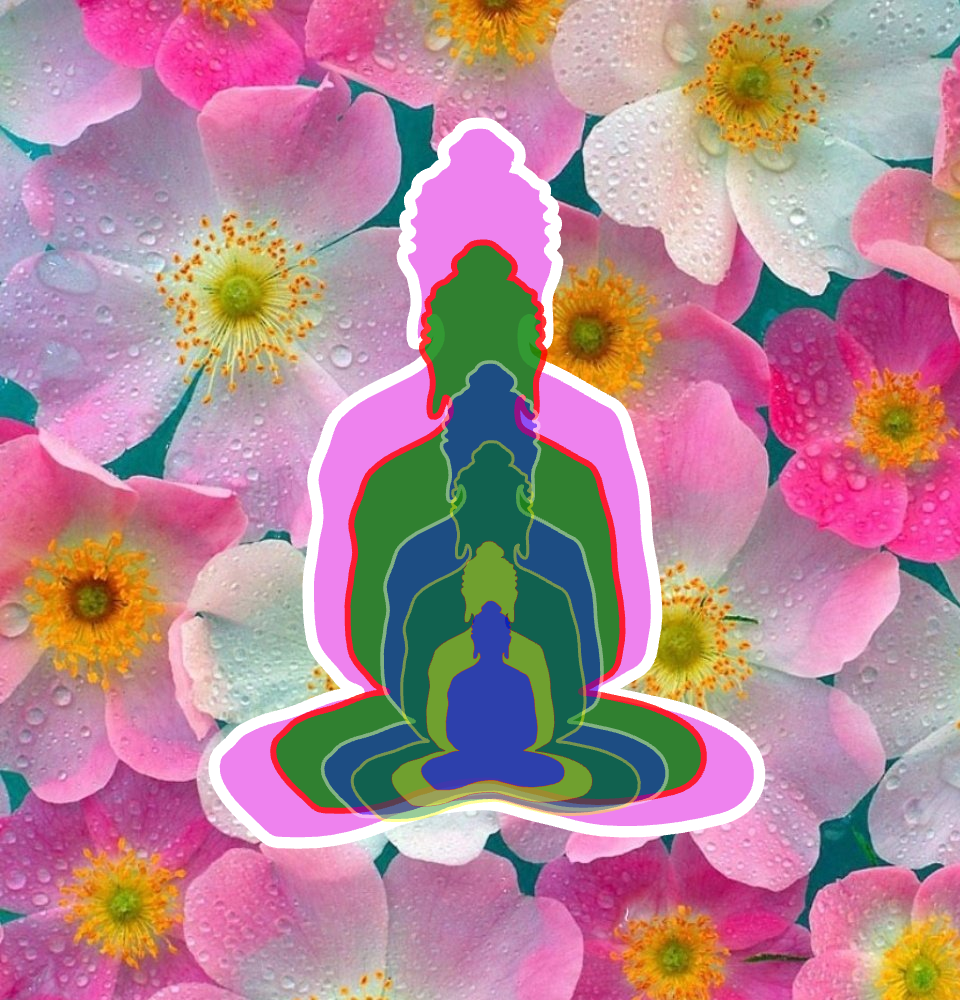 6 buddhas in flower background