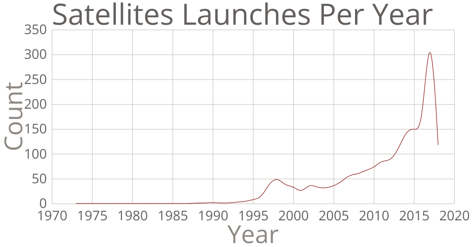This line chart the total number of satellites launched per year