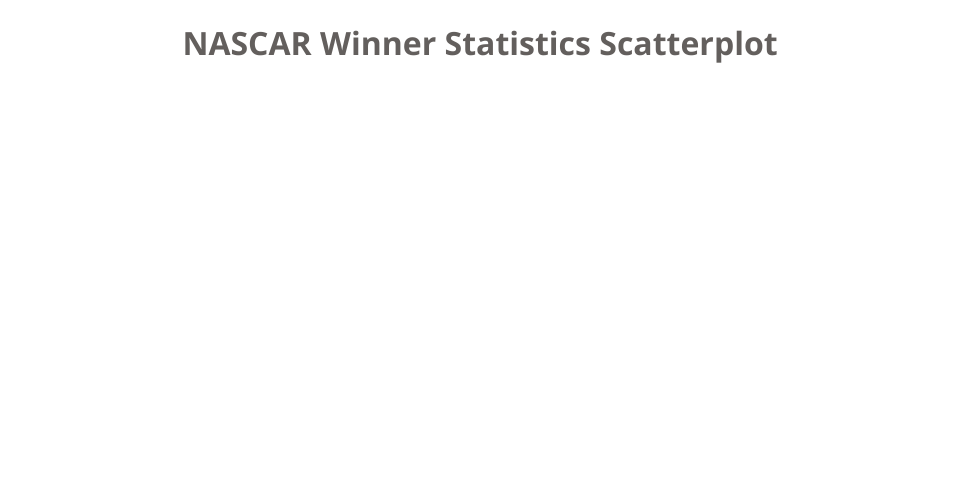 This scatterplot is an expansion on a previous viz I created that shows NASCAR winners by starting position, split by year. This plot colors the points by the track name, adds a dropdown and a legend. The dropdown allows for the selection of different statistics pertaining to the race winners. In addition, hover capability has been added so that hovering over a track in the legend will highlight all of the dots pertaining to that track. These edits will provide the viewer with an opportunity to look for patterns among tracks and track types, and among several different variables. This data comes from a rendition of the NASCAR dataset, which spans from 1975 to 2003.