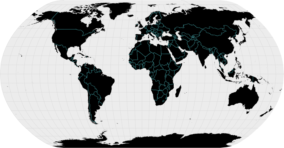 A world map showing country boundaries from World Atlas TopoJSON, polished for visual style, including graticules.