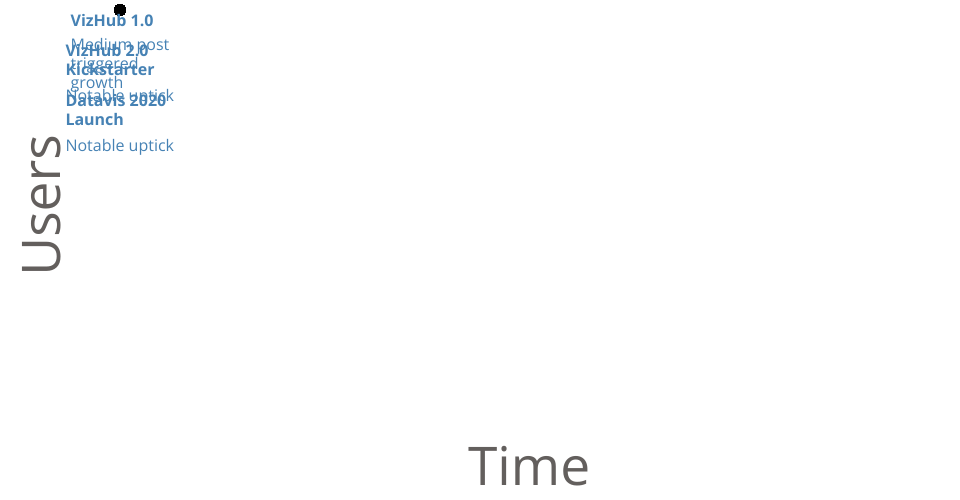 The number of VizHub users over time, since it was launched on August 14, 2018.