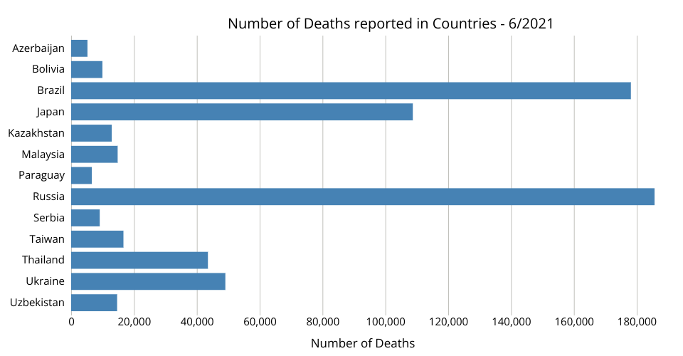 This visualization shows World Mortality Dataset. It visualizes countries with their number of deaths (greater than 5000) reported in June, 2021.