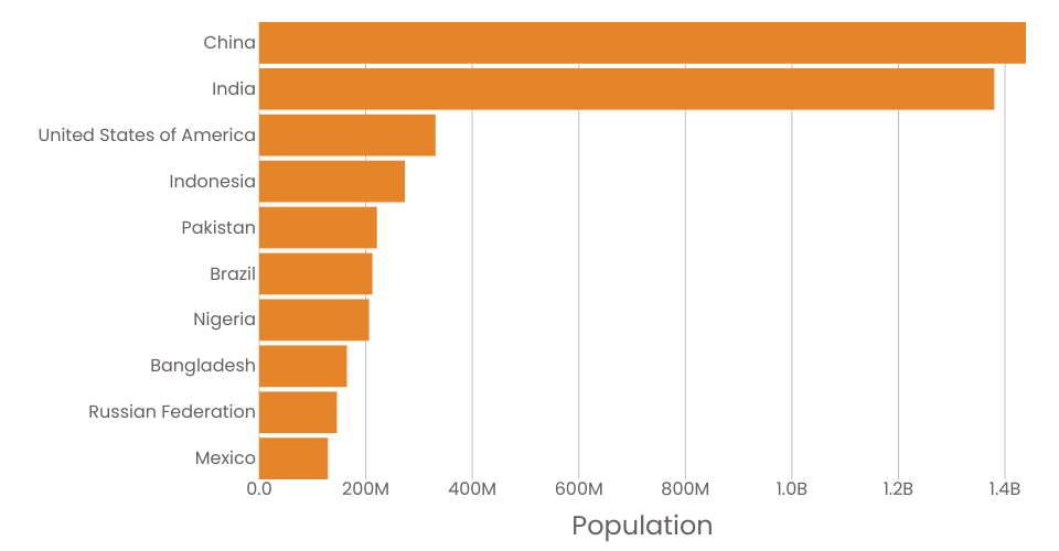 A program that shows the top 10 most populous countries as a bar chart.