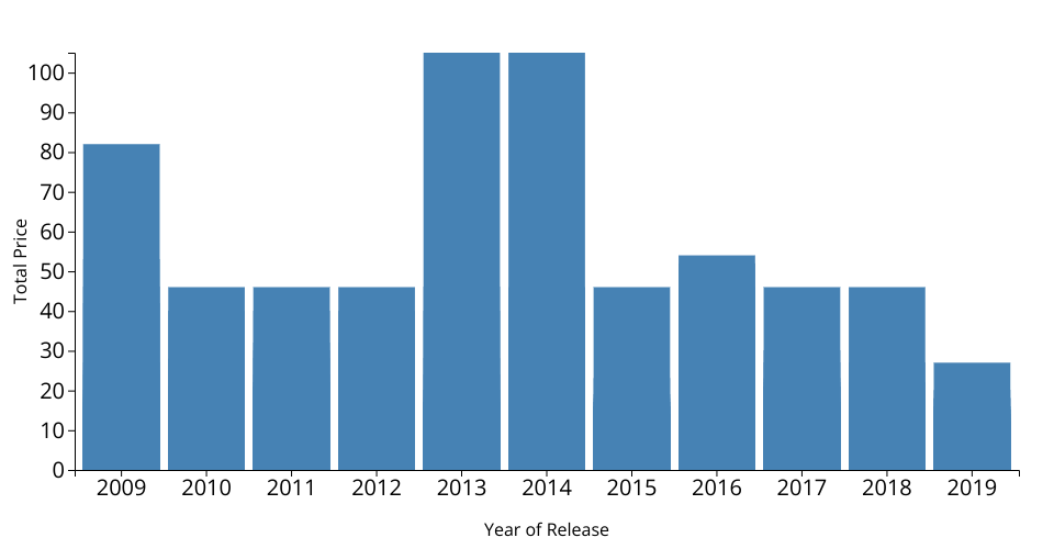This graph showcases how the prices of bestseller books moves up or down year over year.