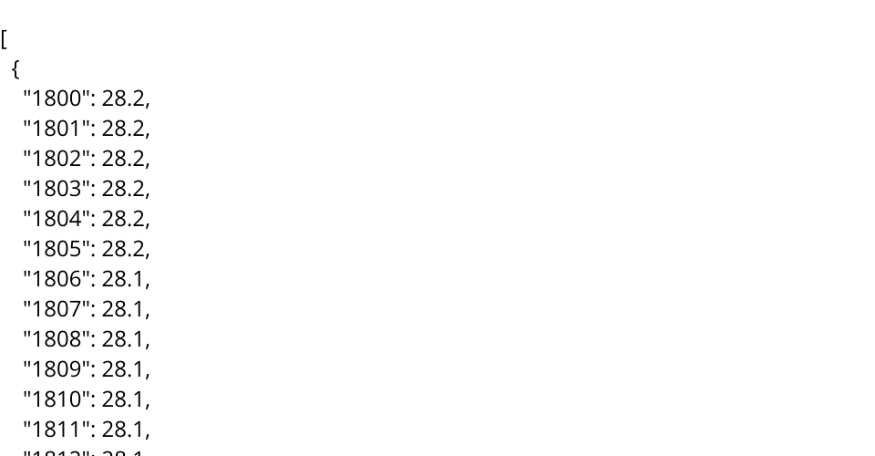 Years (1800 through 2100): Quantitative and Temporal (The life expectancy value for each corresponding year).