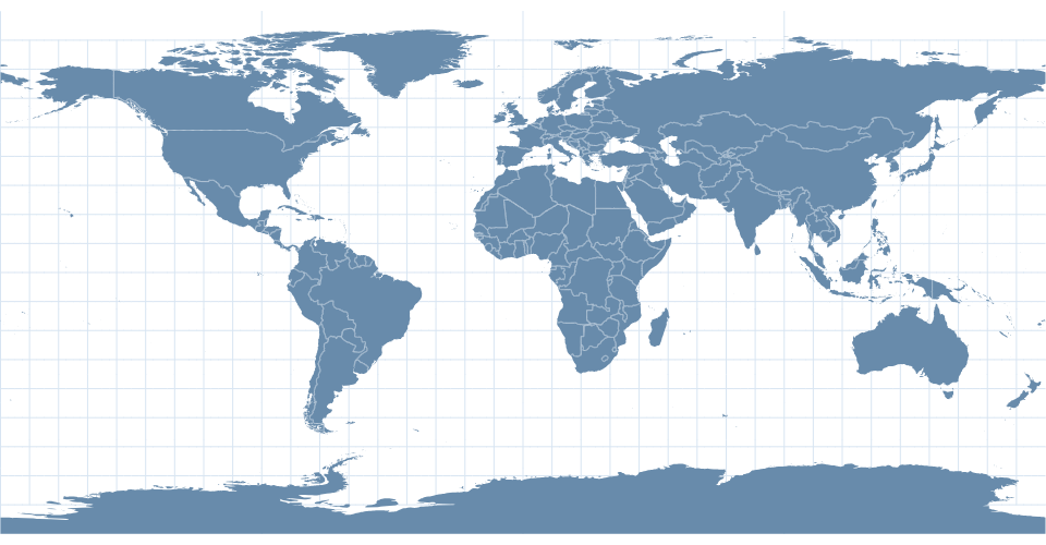 A world map showing country boundaries from World Atlas TopoJSON, polished for visual style, including graticules.