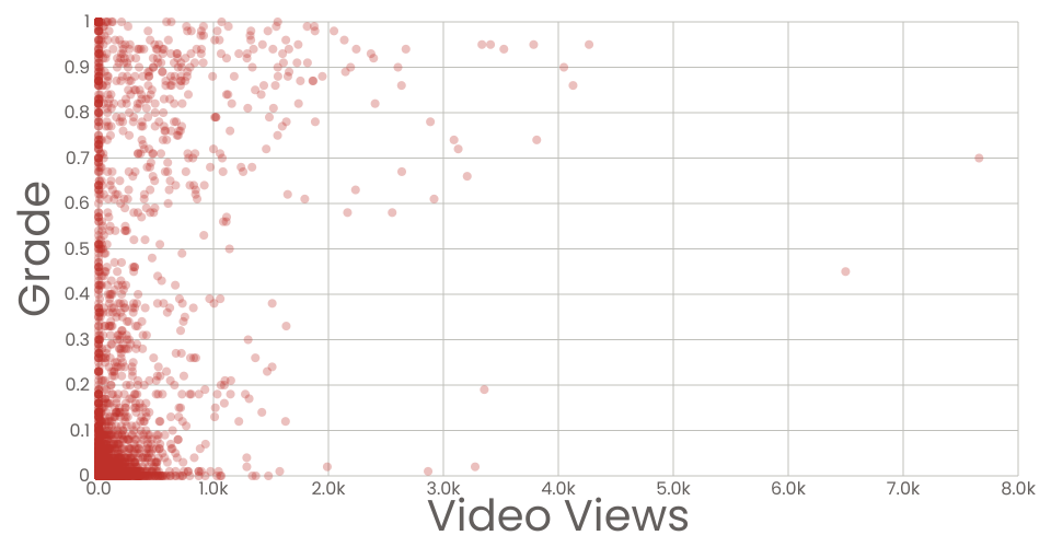 Trying get the institution to feed into the dot color. D3/React. A visualization of video views according to HarvardX or MITX course on EdX for the 2013 academic year. The data can be found on the MITx-HarvardX Dataverse