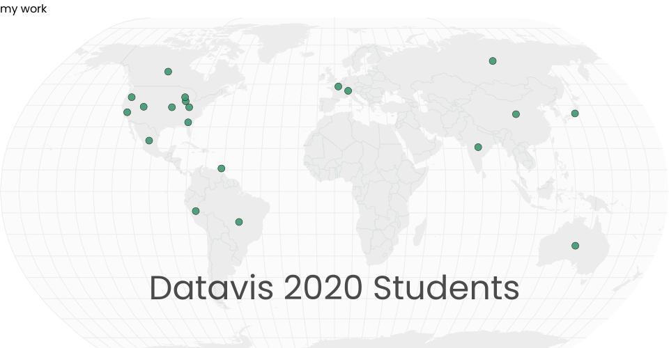 The list of locations was compiled by manually going through the places mentioned by students in their introductions in our Slack channel #datavis-2020