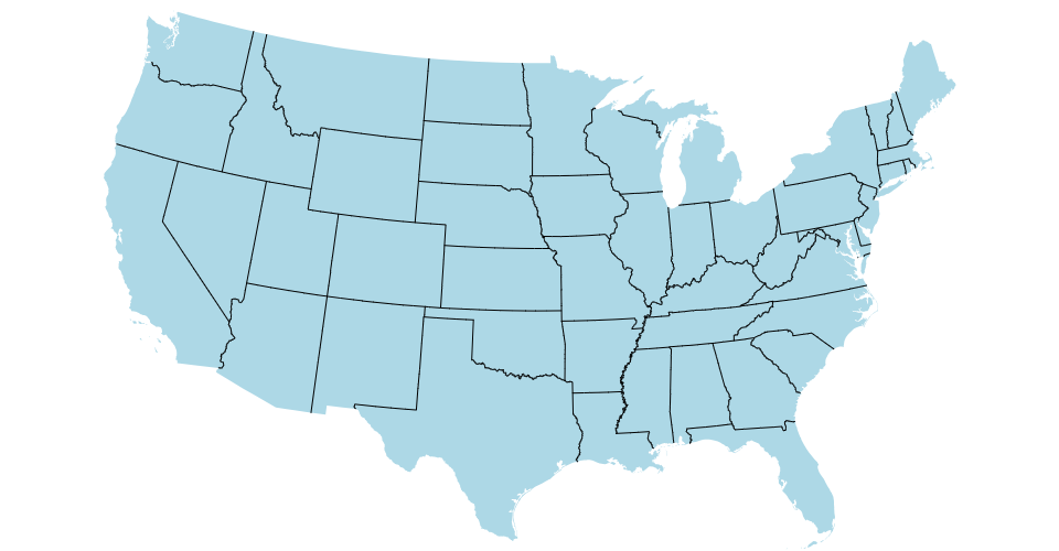 A US map showing states boundaries from US Atlas TopoJSON, polished for visual style, including graticules.