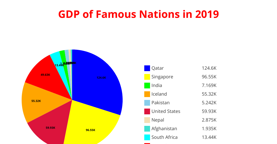 Pie chart for GDP's of famous nations in 2019