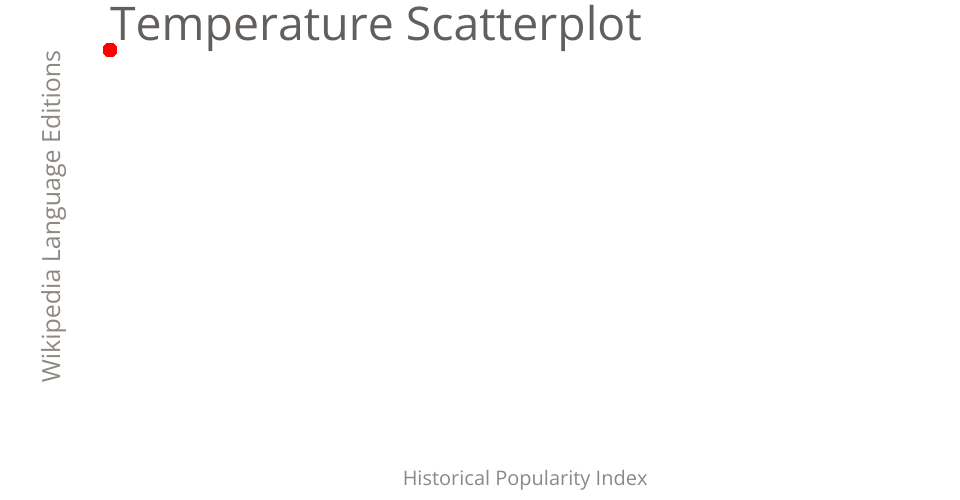 This scatterplot shows the most famous computer scientists based on two parameters - Historical Popularity Index, calculated by the creators of the dataset, and Wikipedia language editions. Data Source: Pantheon