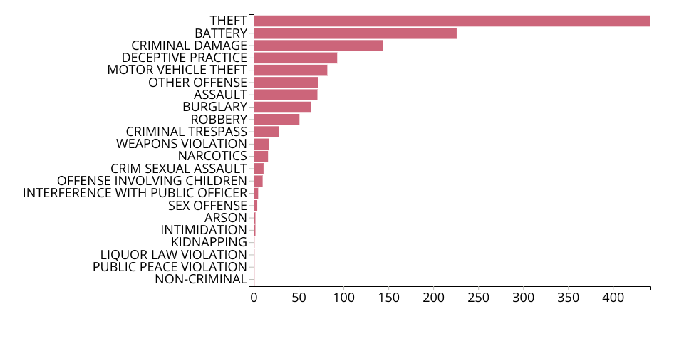 Bar graph displaying the higher crime by various crime type category