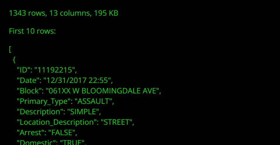 This data is about crime in chicago - filtered to Dec 2017 (due to size contraints)