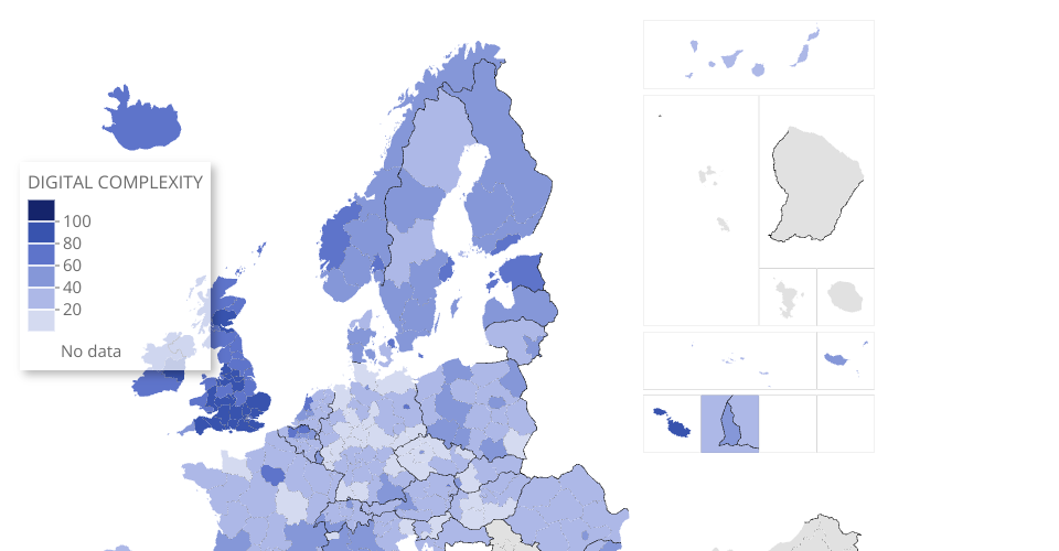 See also React Starter. .legend({ x:10, y:140, title: "Digital Complexity", labelDecNb: 0 }) if (window.innerWidth > 800) { map.insets("default") } else { // settings for smaller devices map.legend({ labelDecNb:0, x: window.innerWidth - 80, y:5 }) .titleFontSize(20) .botTxtFontSize(12) .tooltip({fontSize:10}) .legend({labelFontSize:9}) }