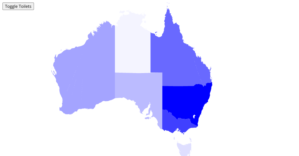 This visualization is covers the domain task "What parts of Australia have an influx of public toilets?"