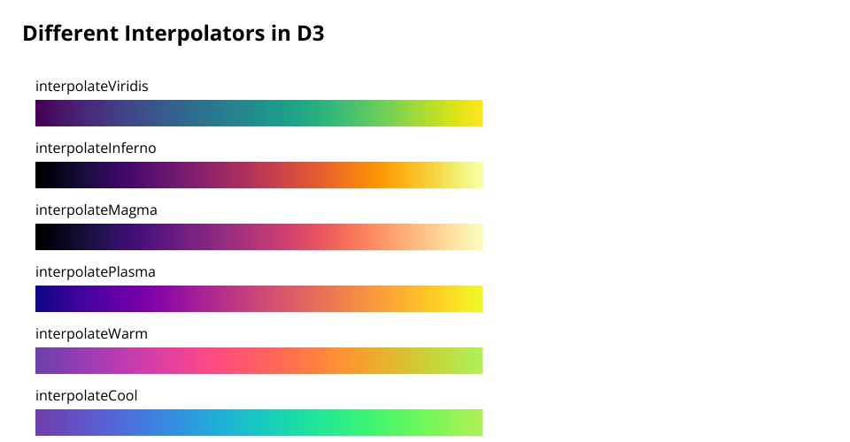 D3 Scale - ScaleSequential - Different Interpolators
