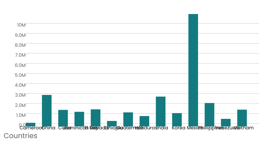 A program that shows the top 10 most populous countries as a bar chart.