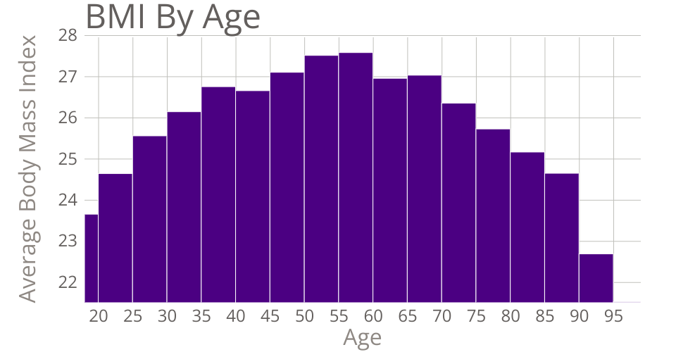 This visualization is a scatterplot of Body Mass Index by gender from the CDC Dataset.