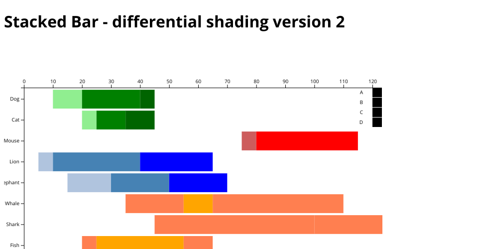 Simplified Stack bar for colouring bars by different groups http://bl.ocks.org/JimMaltby/844ca313589e488b249b86ead0d621a9