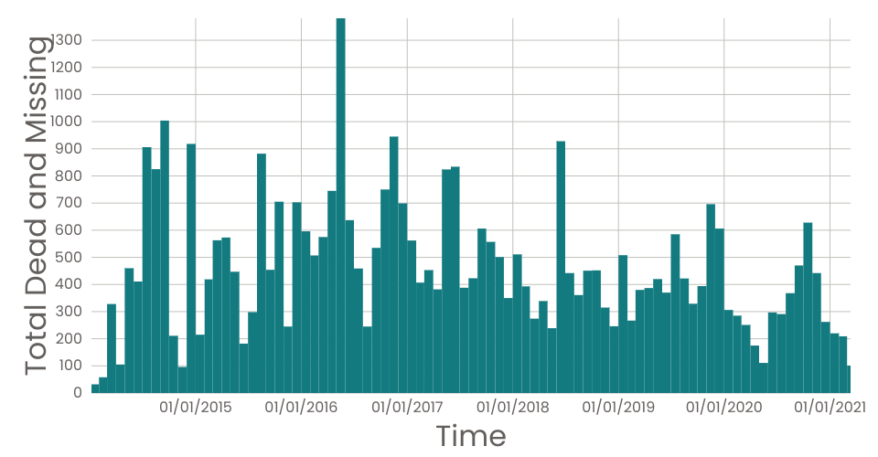 Total Dead and Missing migrants from (Missing Migrants Project)[