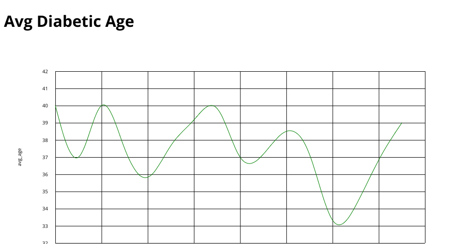 This line chart shows Avg age of a diabetic person in ceratin period of time.
