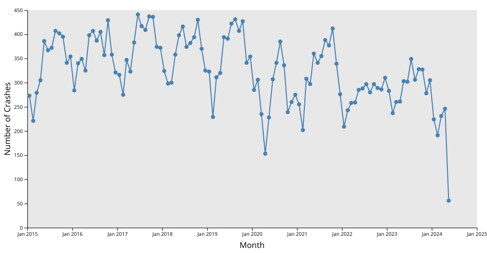 this is line graph of the crashes dataset to show the seasonality of the crashes data