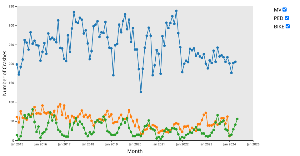 this is line graph of the crashes dataset to show the seasonality of the crashes data