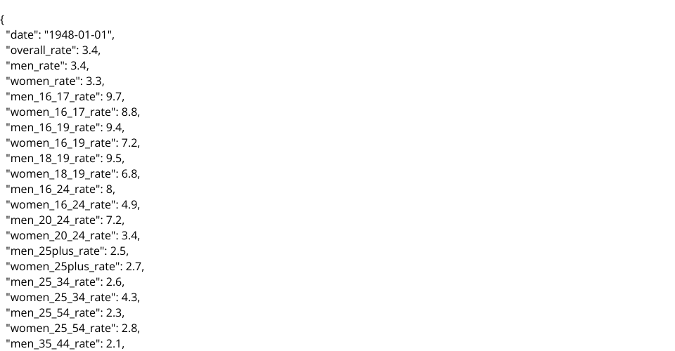 The U.S. Unemployment Dataset, loaded and parsed as CSV.