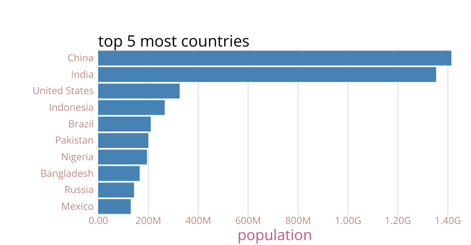 This bar chart shows population of the top 10 most populus countries. The data come from the year 2018 estimmate in World Population by UN