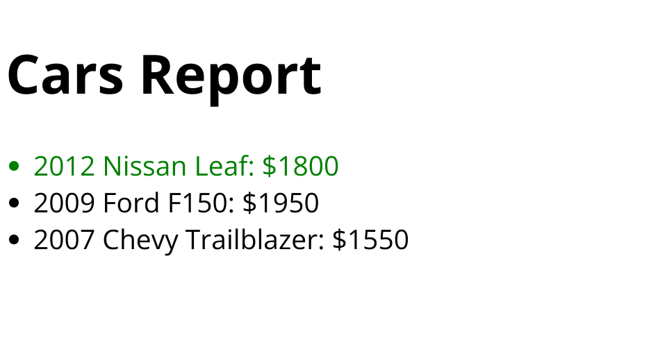 HTML Cars Report