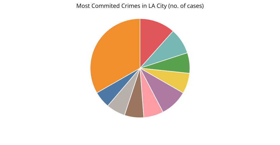 I mapped the top 20 most commited crimes that take place in LA City. You can click on the arc representing 'others' in order to see the rest of the data. Only the top 10 is graphed in the main chart.