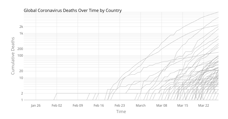 Coronavirus Deaths by Country over Time (with Voronoi Hover)