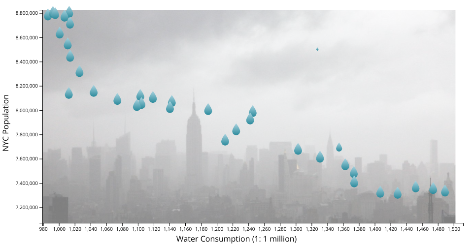 Thank you both! I made the droplets fall down rather than up since it makes more intutive sense. What do you two think about the image of NYC in the background, does it make sense or are images usually not that great as a background in visualizations?