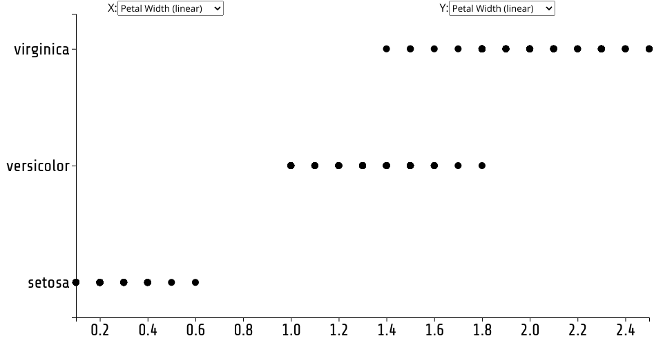 Added scale type option to x and y selects. scatterPlot.js now has two new parameters and corresponding accessors (xType and yType) that decide the scale type used to display data.