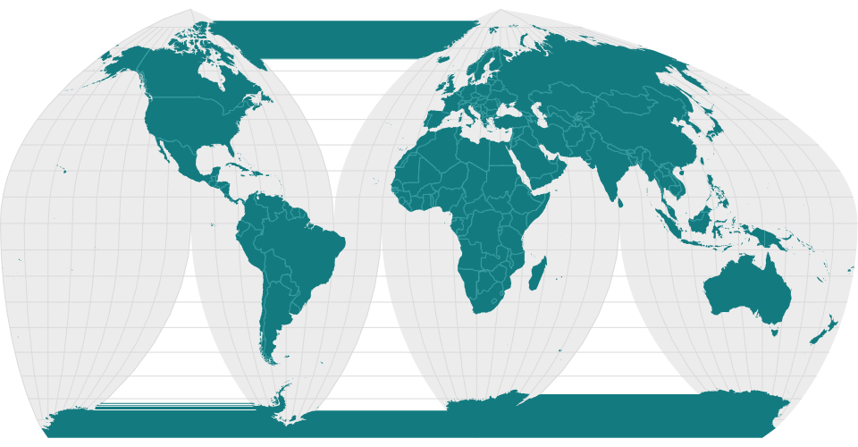 A world map showing country boundaries from World Atlas TopoJSON, polished for visual style, including graticules.