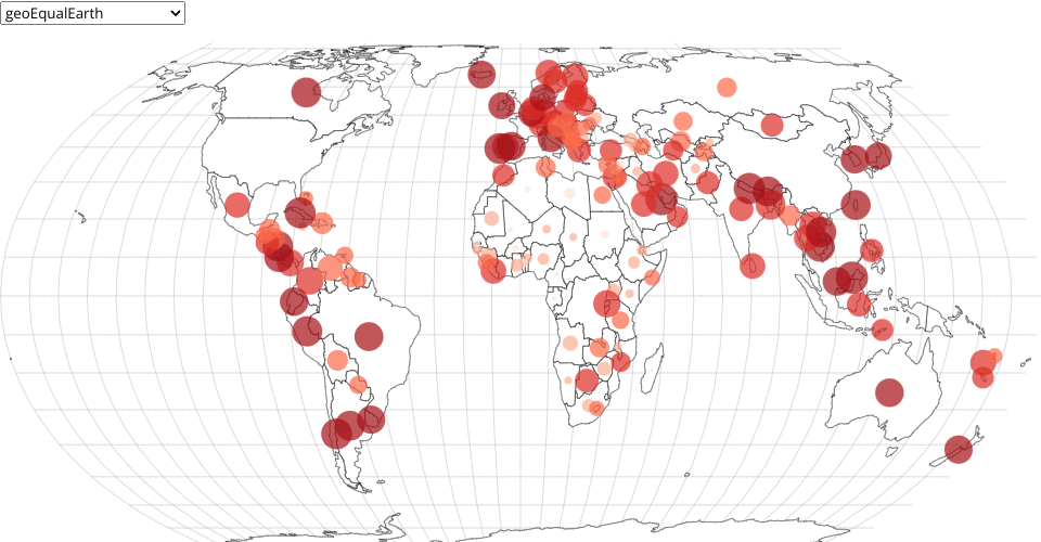 For this week's new tech: I use circle to show the "% of population fully vaccinated" for each country with data. The biggre circle with deeper color shows the higher rate.