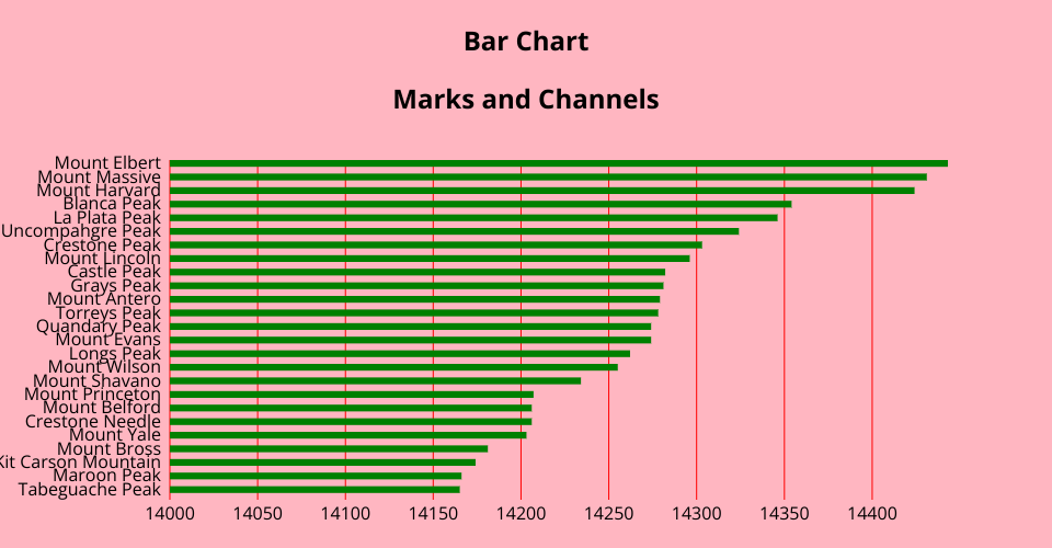 Webpage that displays [Elevations(in ft.) of Mountains] in bar graph.