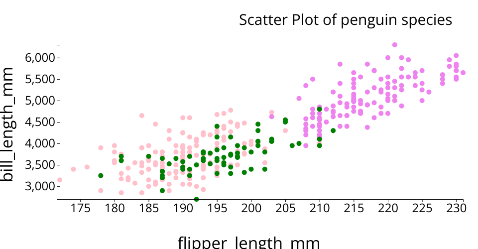 See also React Starter. This shows the number of different species of penguins in different colors and the dataset used has the penguin numbers.