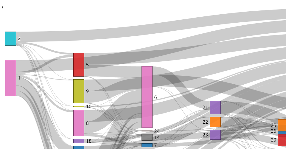 This visualisation was implemented to show the rate of spread between countries in the early stages of the outbreak. as we can see in the sankey diagram.