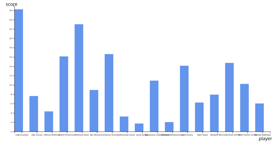 The bar chart visualizes the NBA Player State Dataset. It is designed to depict LAL players score per game in 2020-2021 season.