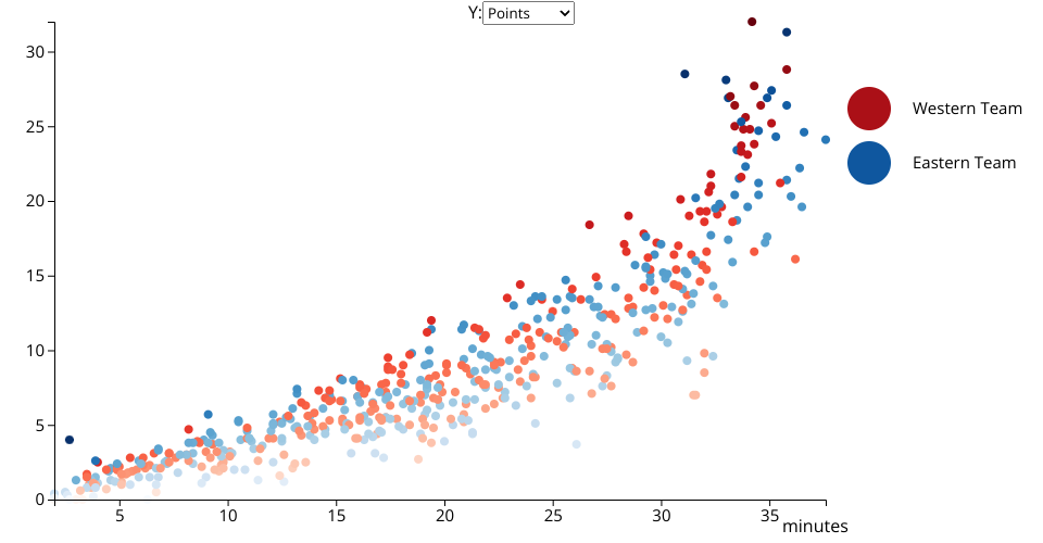 - Separate the players in Western teams and Eastern teams by using different hue of color