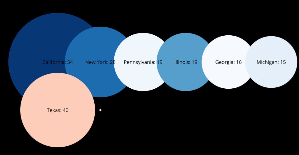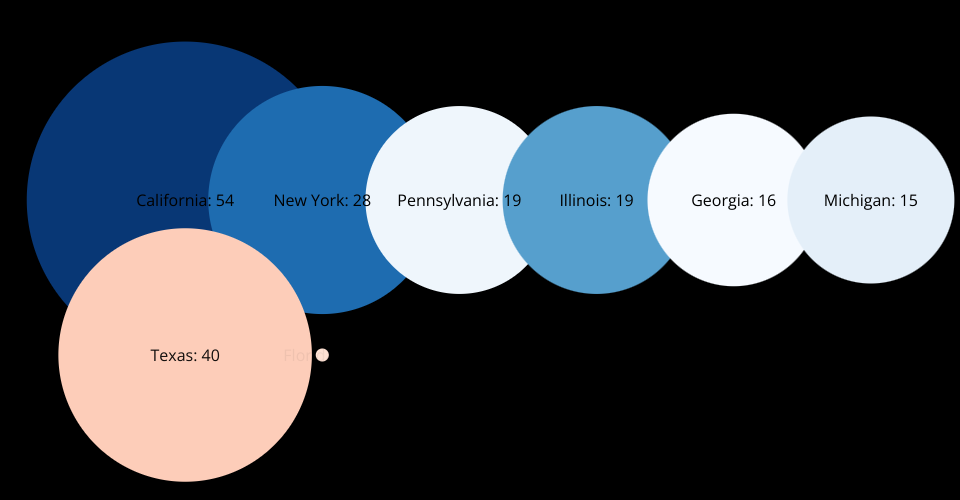 A visualization of the top 10 Electoral College by States and their Electoral Votes